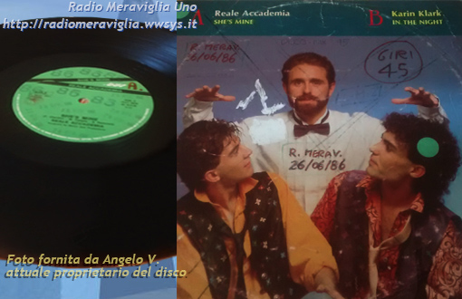 Gruppo: *Reale Accademia* - disco: *She's Mine*. Engineer - M.Flores, M.Rogers, Reale Accademia. Produttore Esecutivo - Mike Rogers. Produttore - Marco Zani Productions (*uno speciale saluto da tutti noi a Marco Zani*) Sritto da - F.Ubertino, M.Tempia, S.Padovani.